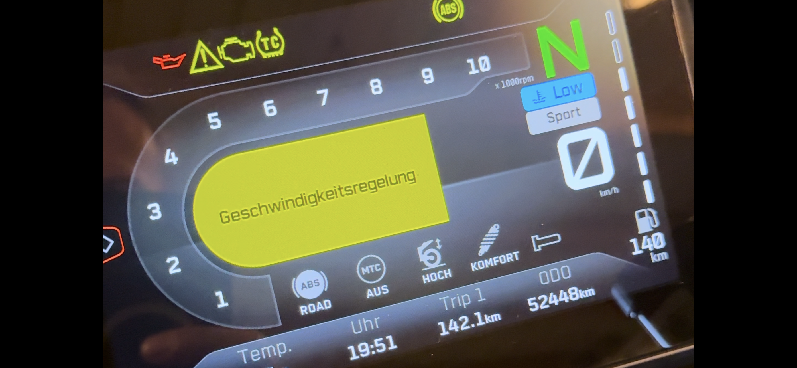 Bei unserem Fahrzeug fallen alle Funktionen aus, die mit der Geschwindigkeit zusammenhängen: Tempomat, ABS, MTC und natürlich auch der Tacho inklusive Kilometerzähler. Der Rest der Elektronik funktioniert normal – anders als beim letzten Elektronikausfall in der vergangenen Saison. Doch dazu später mehr.