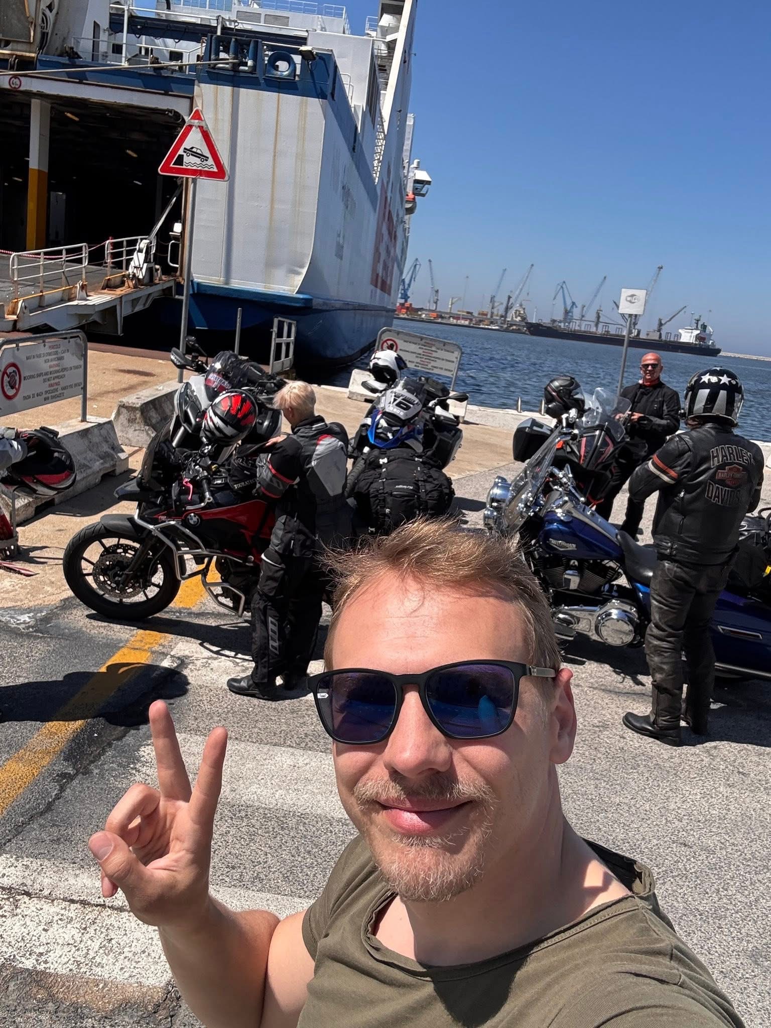 Soviel zum Auftakt – liebe Grüße von irgendwo auf dem Mittelmeer! ☀️🌊 Eure Kurvenfahrer 🏍️