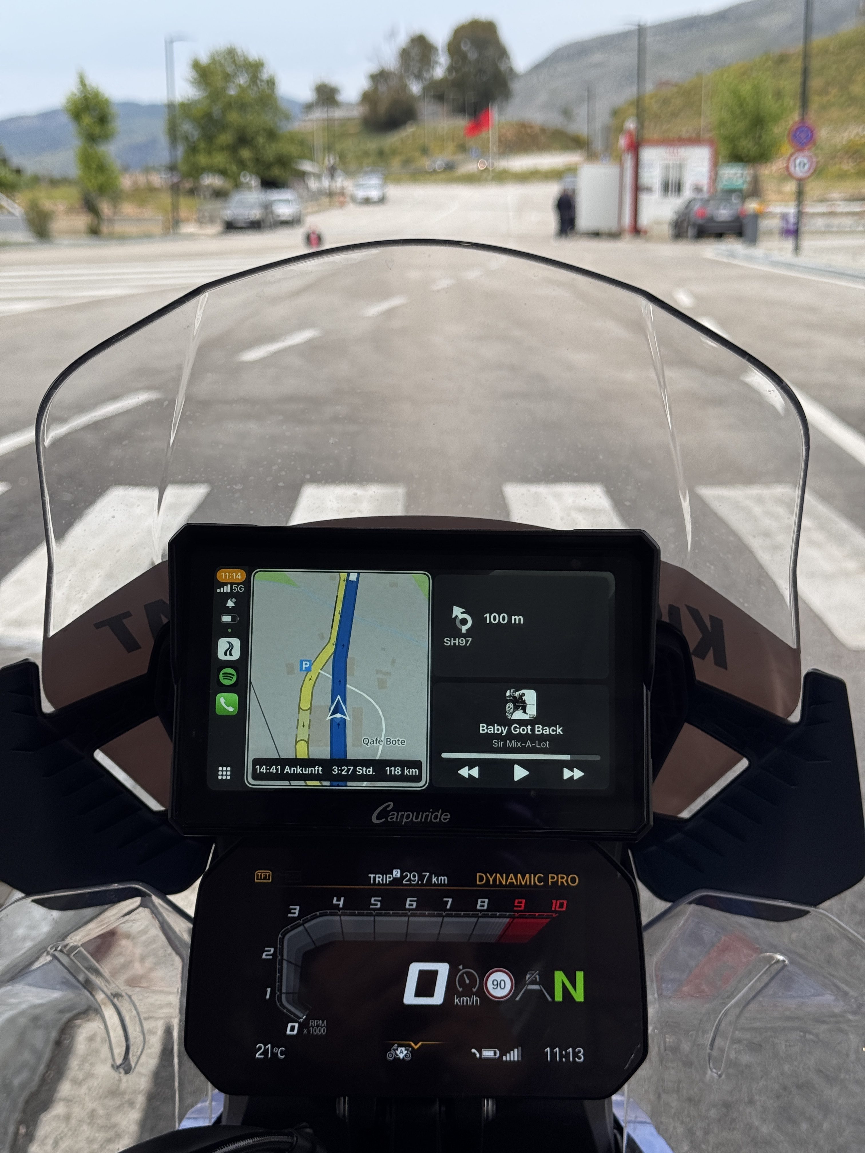 Ich plane meine Routen wie immer mit Kurviger.de zuhause am Computer oder auch unterwegs direkt am Handy – easy. Die App starte ich dann am Handy – und das Carpuride spiegelt mir alles perfekt via CarPlay aufs Display.